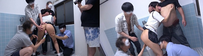 彼女にとってみれば自身の好奇心と探究心を満たす彼女らしい、いわば善性のモチベーションが起こした現象です。でも、それは我々にしてみれば眩しすぎました。元気いっぱいに「乱交してください!」なんて言われたら目を焼かれてしまいます。我々に出来ることといえば、制服のままの彼女を車で連れ出し公衆便所に連れ込んで即マンコ舐め。運動部で代謝がいいからか「汚ないです、やめてください…」なんて言っていましたが少し味があるくらいが大好物です。そのまま床タイルに直に座らせて小便まで飲み啜らせてもらいました。とはいえ、そんな変態NTR行為にも発情してしまう様でしてチンポを咥えては人生初体験のイラマチオにエヅキ汁吐きながら咽まくり。何度も中年チンポを無遠慮に貫かれながら、身体をビクンビクンさせてはイキまくり絶頂を繰り返すのでした。調教されたい思いを馳せてやってきた子ですから、もっと色々と虐められると思っていたかもですが、こんな風に、ただ穴を差し出すだけでおっさん共が勝手に射精するだけの玩具にされるだけでした。でも、これだけ何本も抜き差しされて最後に出された精子も中に掻き入れられて、なお気持ちいいなら確実に変態の才能はあると思いますので、いつかガッチガチの調教プレイを経験することも出来ると思います。